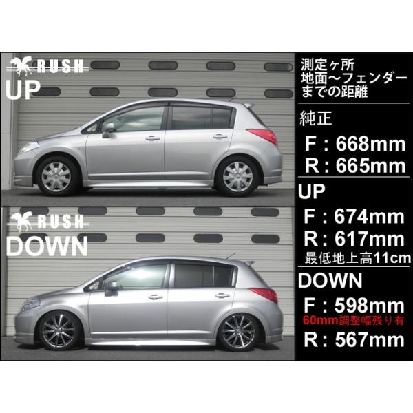 Rushダンパー車高調整キット Comfort Class C11 ティーダ 装着データ Rush Rush Rush